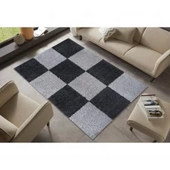 Top Square Tapis Ă©pais Askov – Fibres synthĂ©tiques – Noir / Gris foncĂ© – 160 x 220 cm