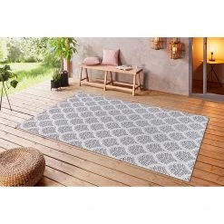 Top Square Tapis intĂ©rieur / extĂ©rieur Saal – Fibres synthĂ©tiques – Ivoire / Gris – 80 x 150 cm