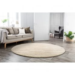 THEKO die markenteppiche Tapis en laine Flokos 1250 II – Laine vierge – Naturel – Diamètre : 100 cm
