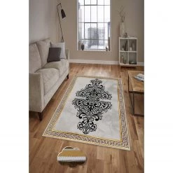 Top Square Tapis Marmori – Coton / Polyester Blanc / Doré – 200 x 300 cm