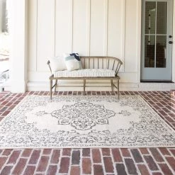 Top Square Tapis intérieur / extérieur M2K – Fibres synthétiques – Ivoire / Gris – 140 x 200 cm