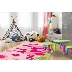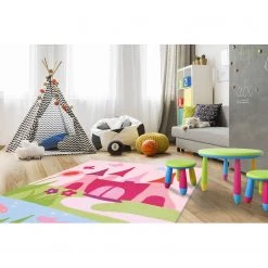 Arte Espina Tapis enfant Joy Castle II – Fibres synthétiques – Rose / Vert