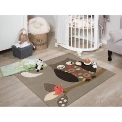 Arte Espina Tapis enfant Joy Owl II – Fibres synthétiques – Taupe / Abricot