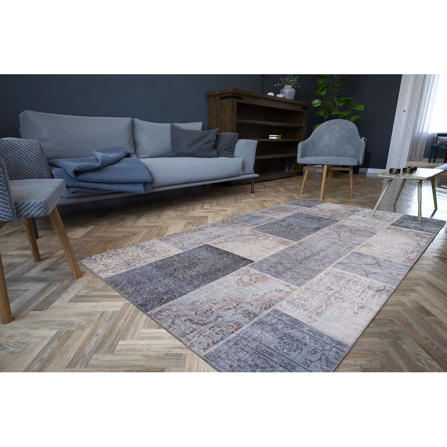 Flair Rugs Tapis Splinter I – Polyester – Bleu pétrole – 120 x 170 cm